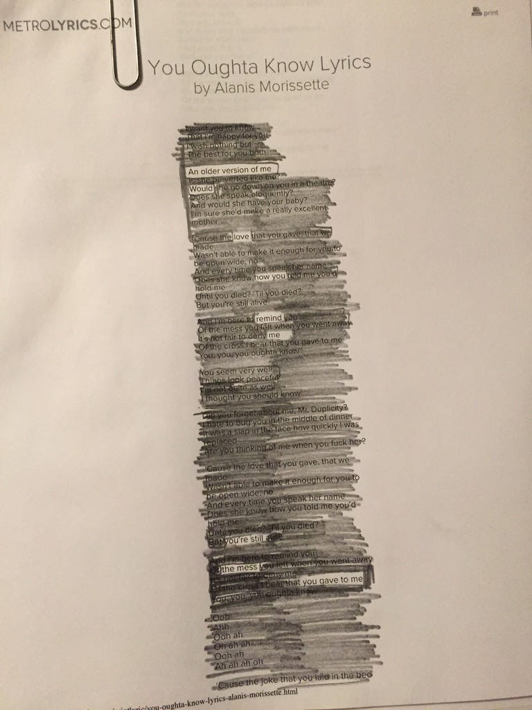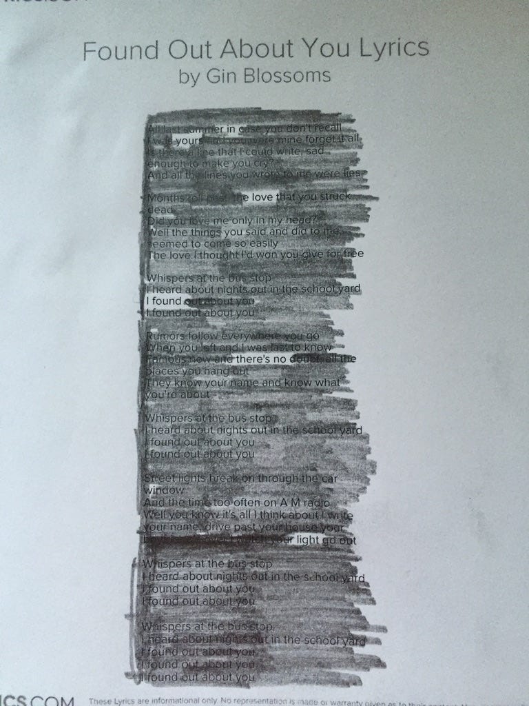 Erasures are laborious—I know I mentioned that but it bears repeating. They are so much work. So much work that when I sit down to do them, I wonder why I’m sitting down to do them. About 10 years ago I did a project erasing song lyrics. They never went anywhere, but I still enjoy them.